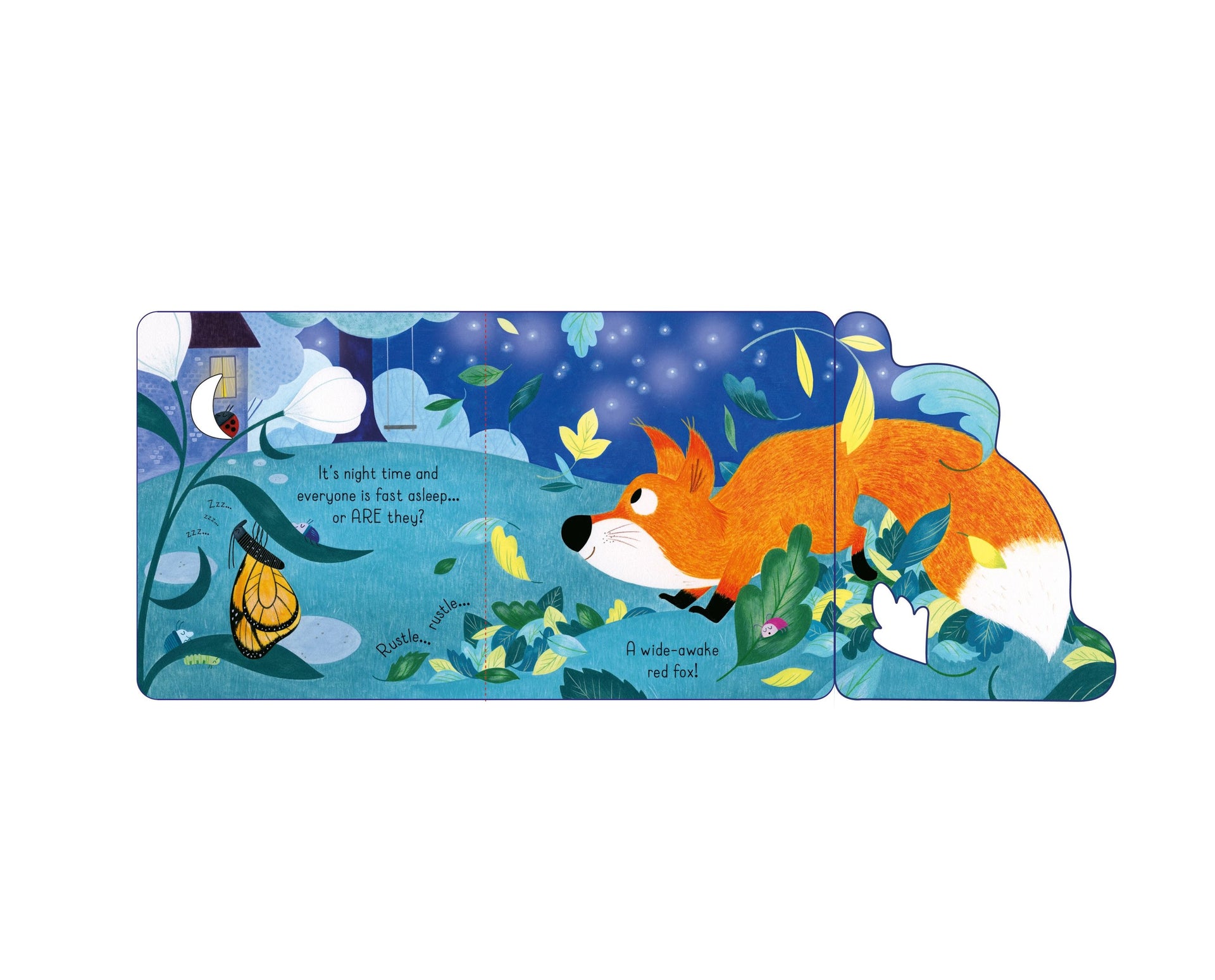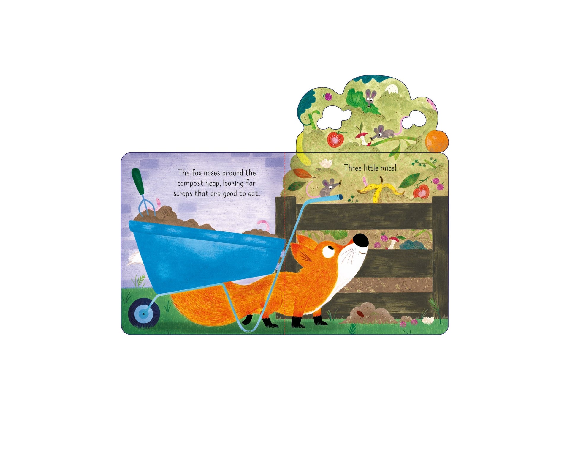 At night, everyone is fast asleep - or are they? In the garden there's a curious red fox. Lift the flaps to find her as she sniffs around in the garden, and discover all kinds of other animals. From a frog in the pond, and a mouse near the compost heap to a hooting owl taking off into the starry sky, little children will love discovering what goes on outside while they are asleep.
