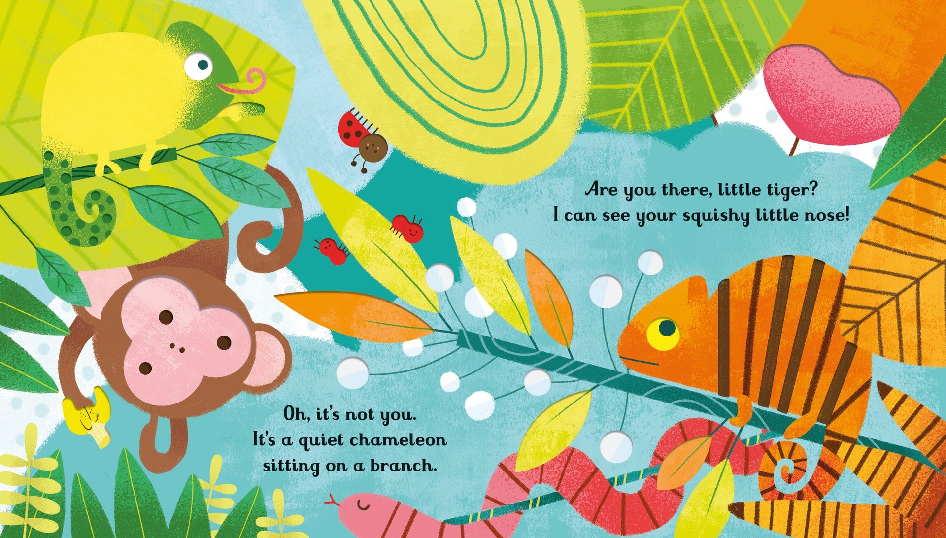 Little tiger is hiding! Very young children will love peeping through the holes and touching the textured pages in this beautiful hide-and-seek board book, spotting monkeys, bears and chameleons along the way. Part of a gorgeous series for babies and toddlers, perfect for fans of That's not my.