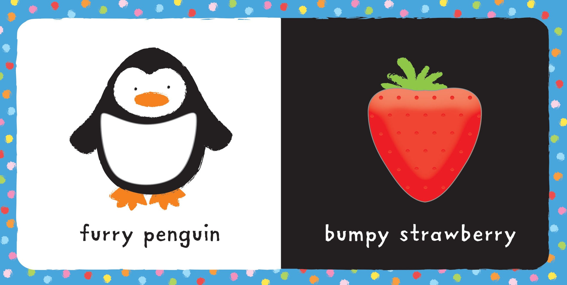 Delightful board book with high contrast illustrations and touchy-feely patches specially designed to appeal to the very young. Each picture has a simple description that will help babies learn to associate words and pictures.