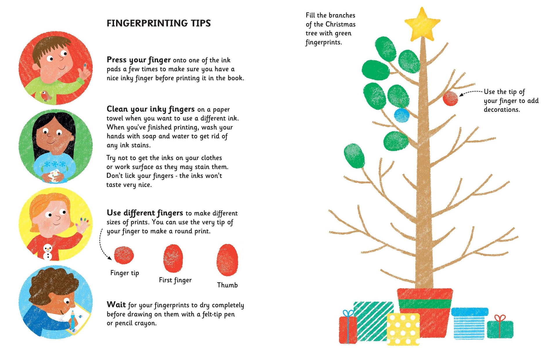This activity book with seven coloured ink pads is full of pictures to complete with festive fingerprinting, including decorating a Christmas tree and Christmas stockings, gingerbread men and wintry snow scenes. Simple instructions show how to use different fingers to make different shapes to print reindeer, birds, snowmen and lots more.