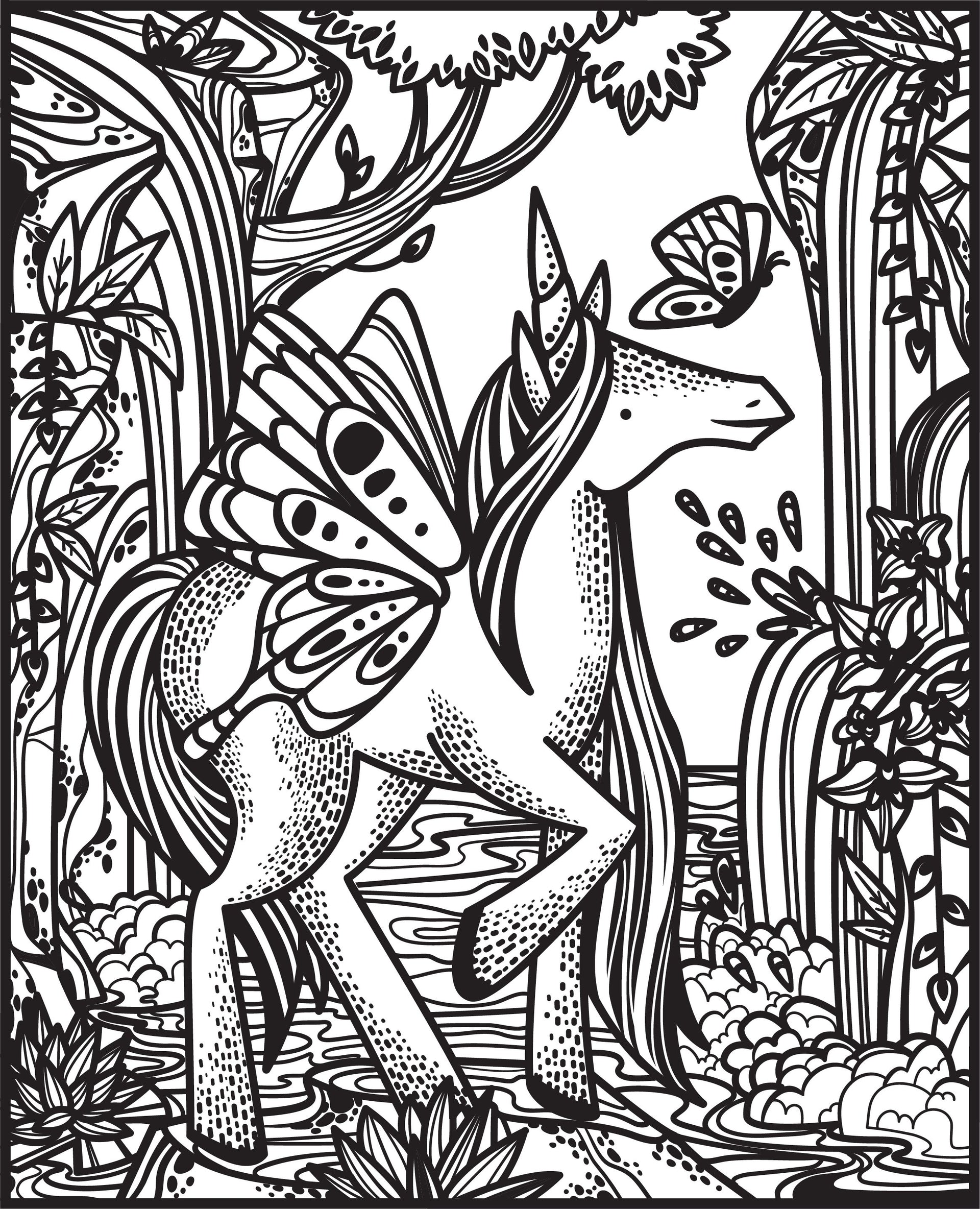 Brush water over the black and white illustrations and watch the magical unicorn scenes burst into colour! Sixteen detailed scenes include unicorns playing in a waterfall, collecting apples in an orchard, flying above a rainbow and much more. The perfect gift for unicorn lovers, with a handy fold-out back cover that prevents colours running onto the page beneath.