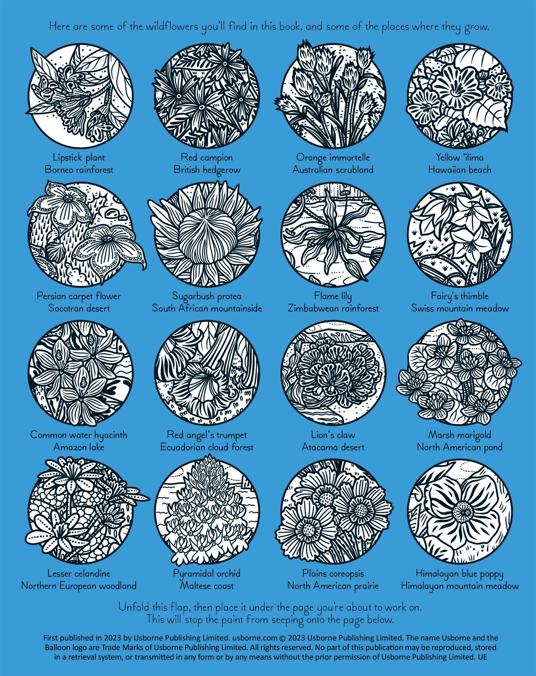 From flowers of hedgerow and prairie to desert blooms and rainforest orchids, this book is bursting with beautiful wildflowers from different environments all around the world. Meticulous research has gone into each image, with the help of an expert from Kew Gardens, to ensure that the flowers and settings are portrayed as naturalistically as possible. Use the brush provided to sweep water over the designs and vibrant colours magically appear! A mess-free way to keep children busy, perfect for travel. Simply tuck the waterproof back flap under each page as it's painted, to stop water from seeping through to the rest of the book.