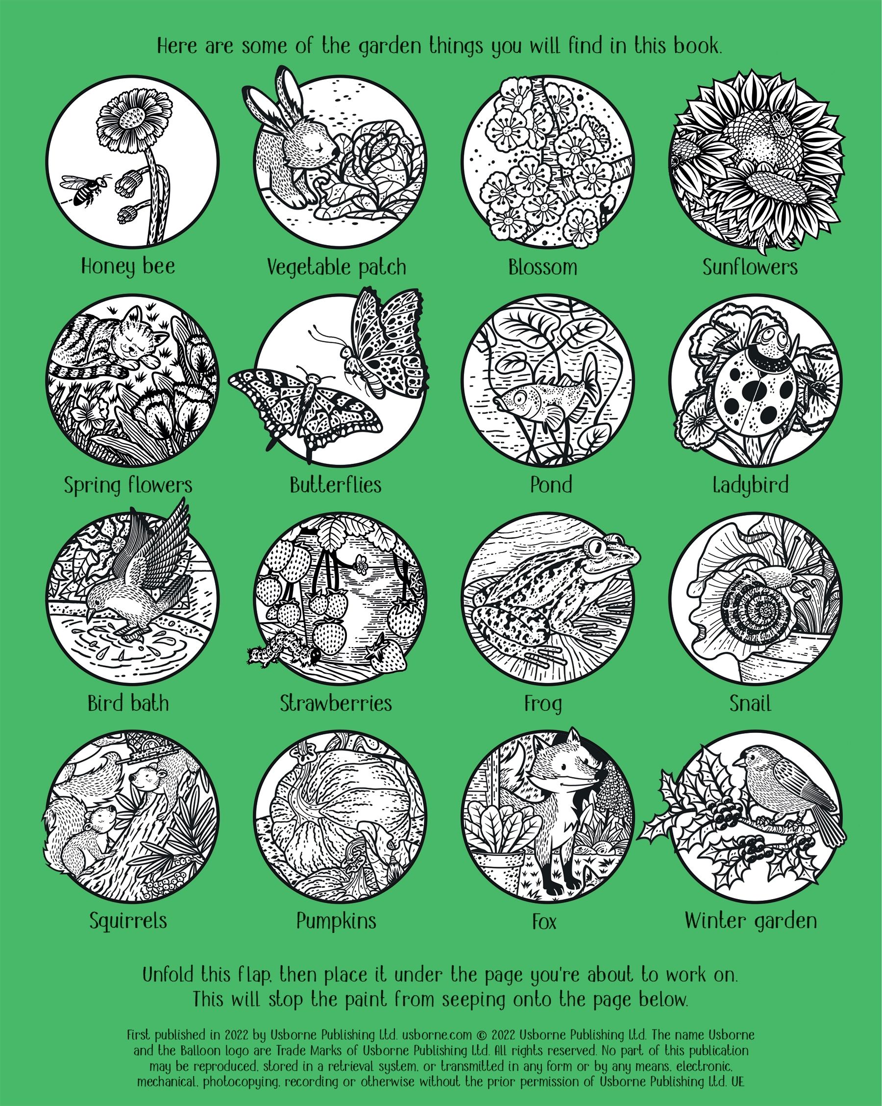 Packed with vivid scenes showing garden favourites from a pumpkin patch to busy butterflies and frolicking foxes. Simply brush water over the black and white designs to reveal an array of sumptuous colours.