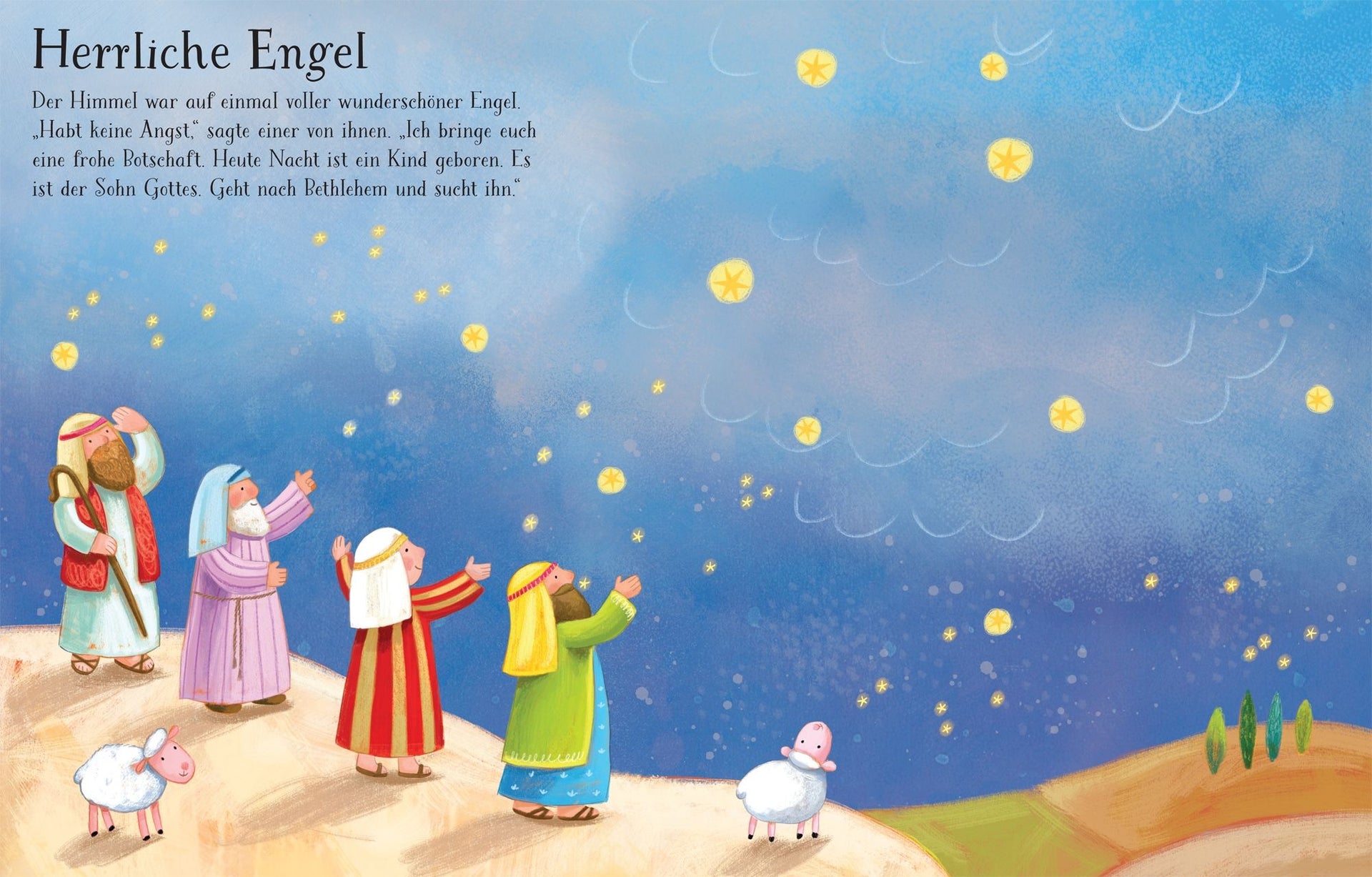 Little children can bring the Nativity story to life with this enchanting sticker book. There are colourful scenes of Mary and Joseph's journey to Bethlehem, Jesus' birth, the arrival of the shepherds and the Three Wise Men , and 230 stickers of people, animals and angels to add to the pages. A lovely introduction to the Christmas story.