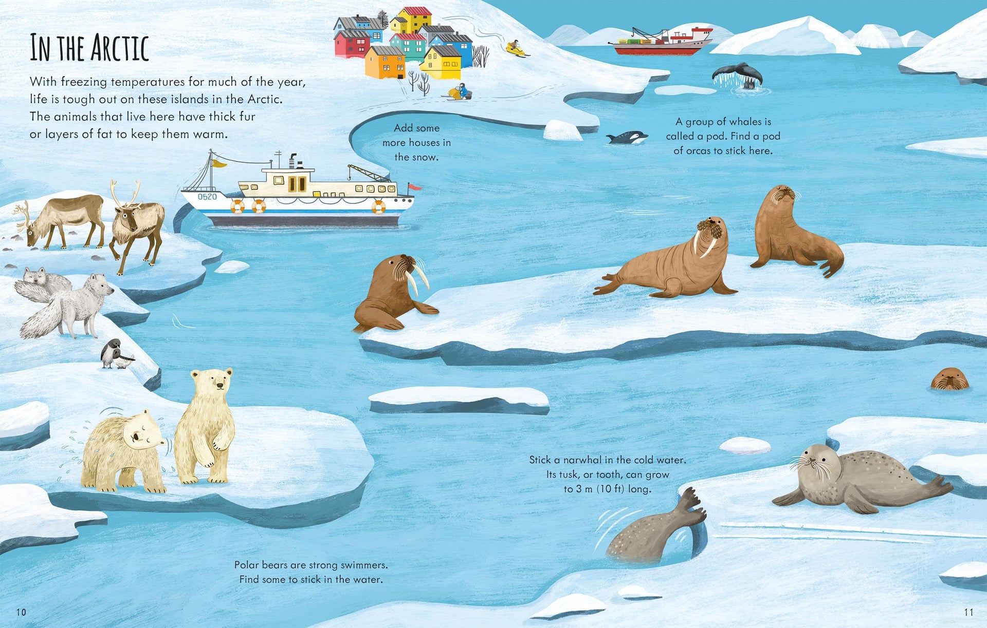 Discover the many wonders Planet Earth has to offer in this inviting sticker book. Travel to dusty deserts, the icy Arctic and lush tropical rainforests to find out about the incredible plants and animals that live there. Add over 150 stickers to bring the scenes to life.