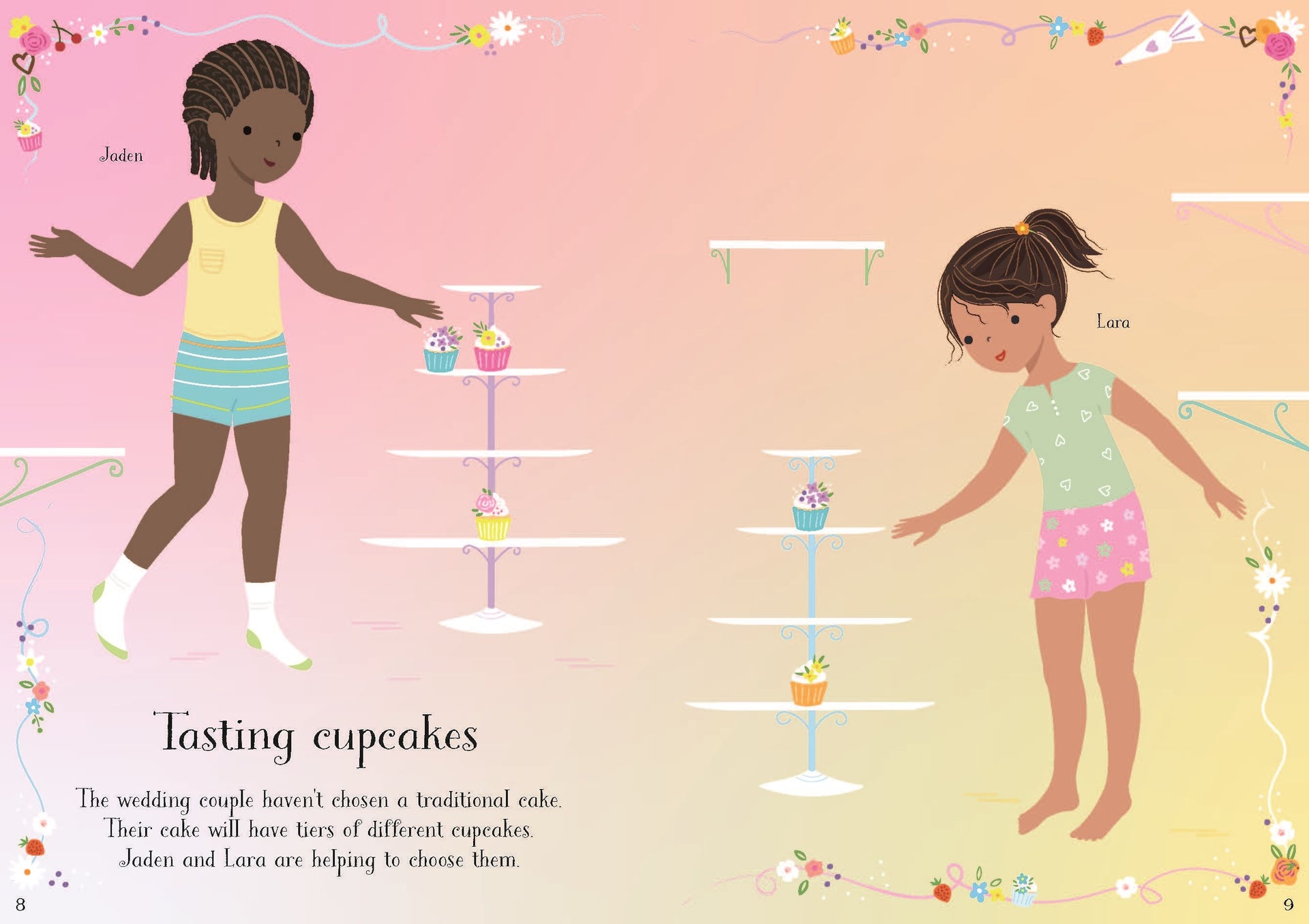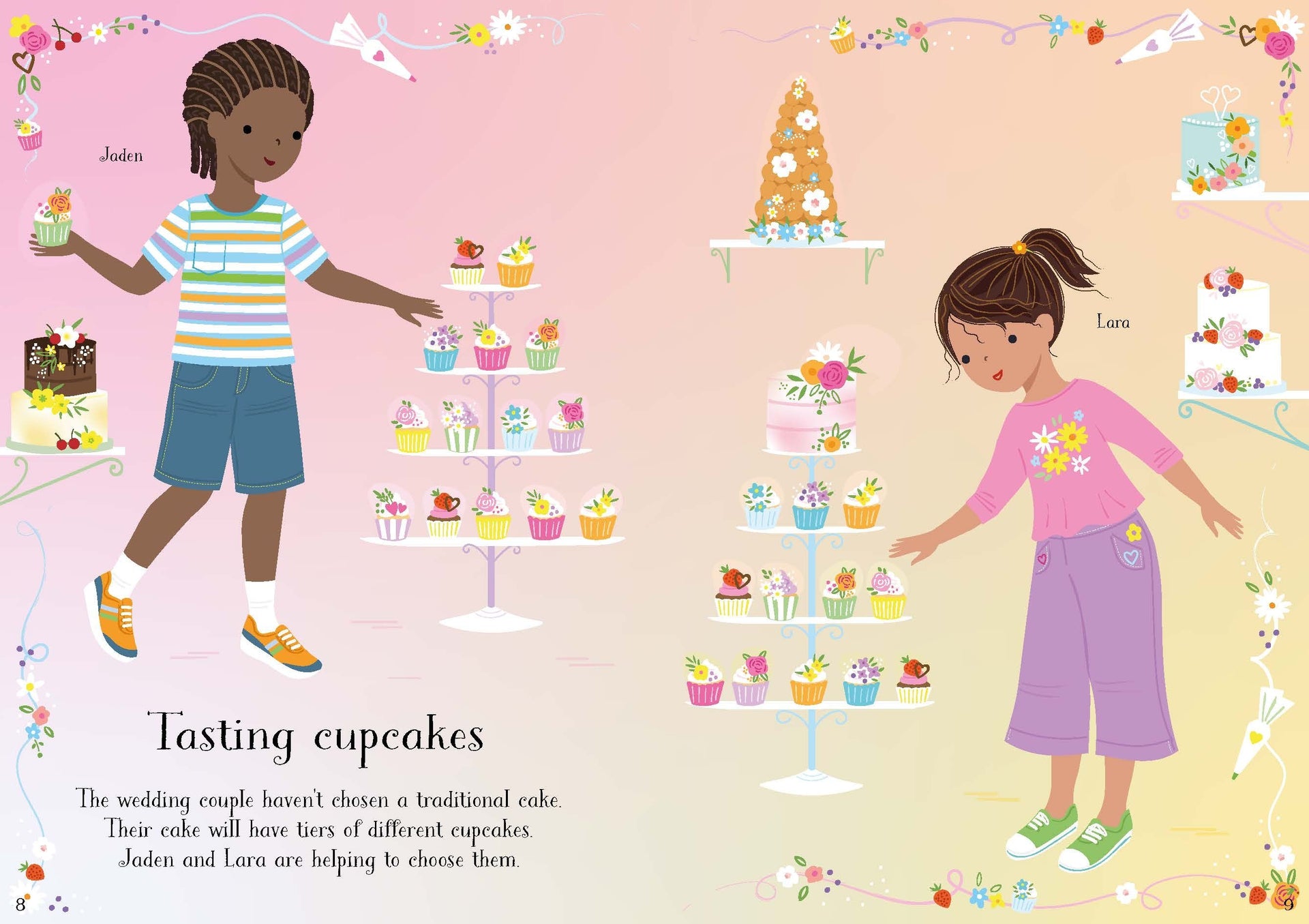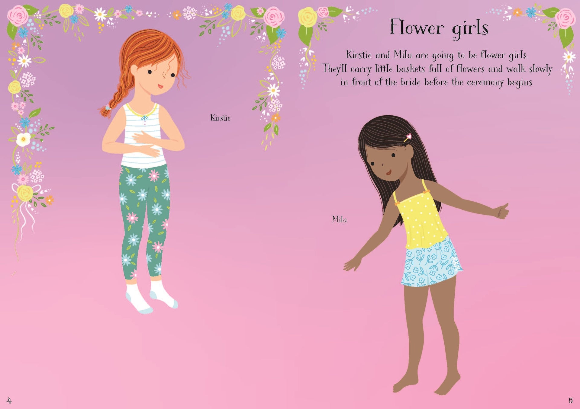 This delightful little sticker book is full of bridesmaids, page boys, ring bearers and wedding guests to dress. There are lots of different types of weddings, from a formal one to a ceremony on a beach, in a garden or a magical winter setting. Use the stickers to dress the dolls, add their accessories and decorate the scenes.