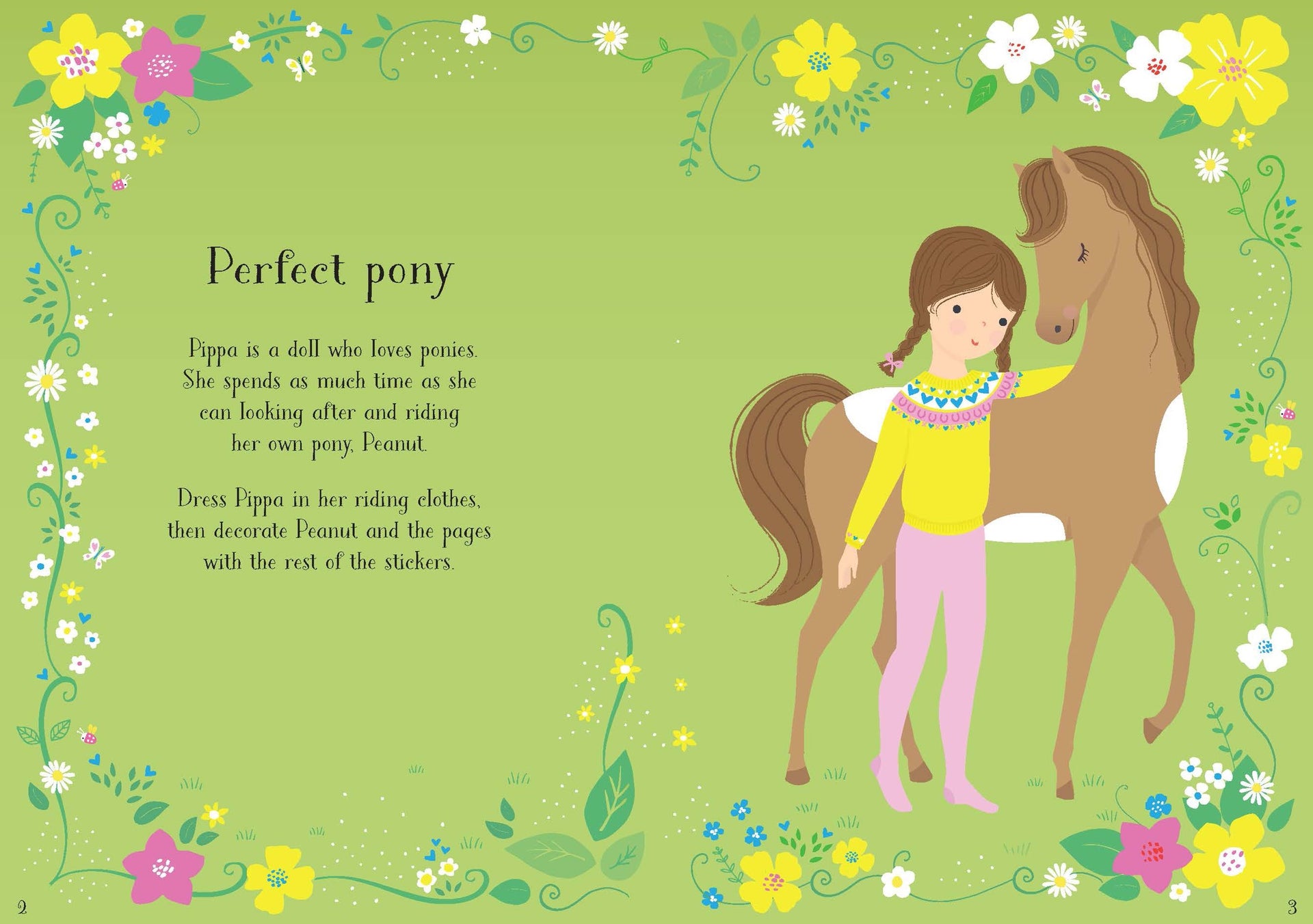 Pony-mad children will love this magical activity book, filled with dolls to dress and horses to decorate. Each page features a different scene, including a fairytale ball, a rodeo, a flower meadow and more. With over 300 reusable stickers of clothes, flowers and accessories, and a fold-out back cover for parking spare stickers when not in use.