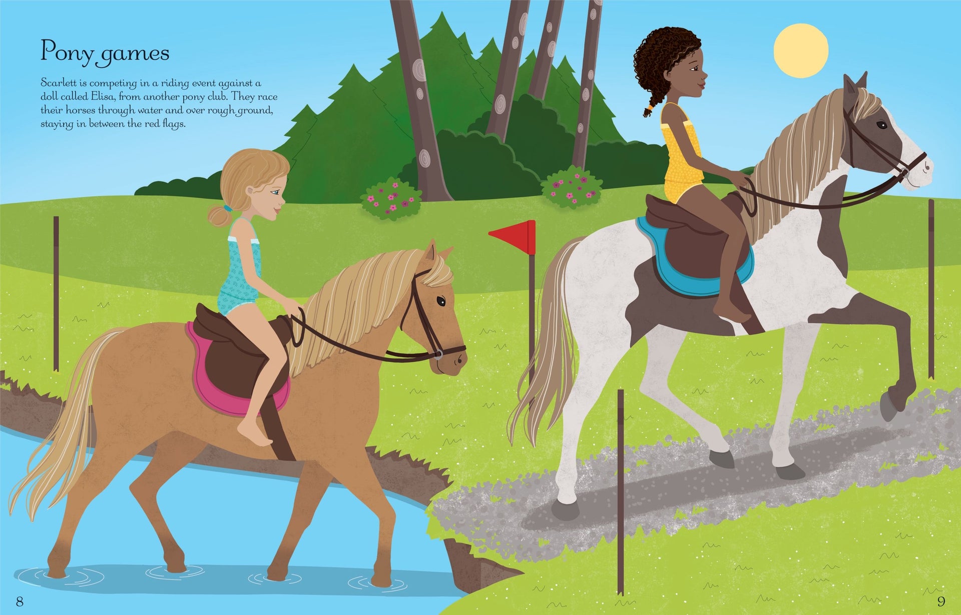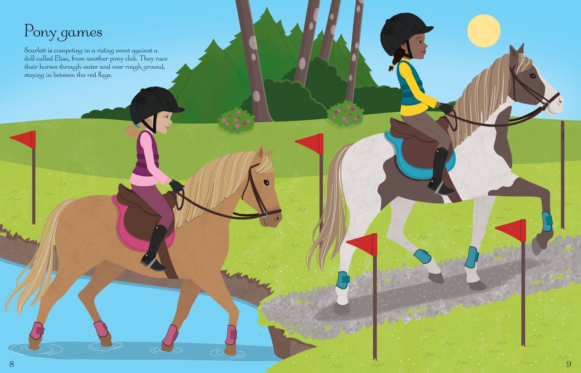 Select outfits for the dolls as they indulge in their passion for horses and ponies. Choose their clothes for grooming, feeding and cleaning out at the stables, going for a trek in the countryside and taking part in pony games and show jumping events