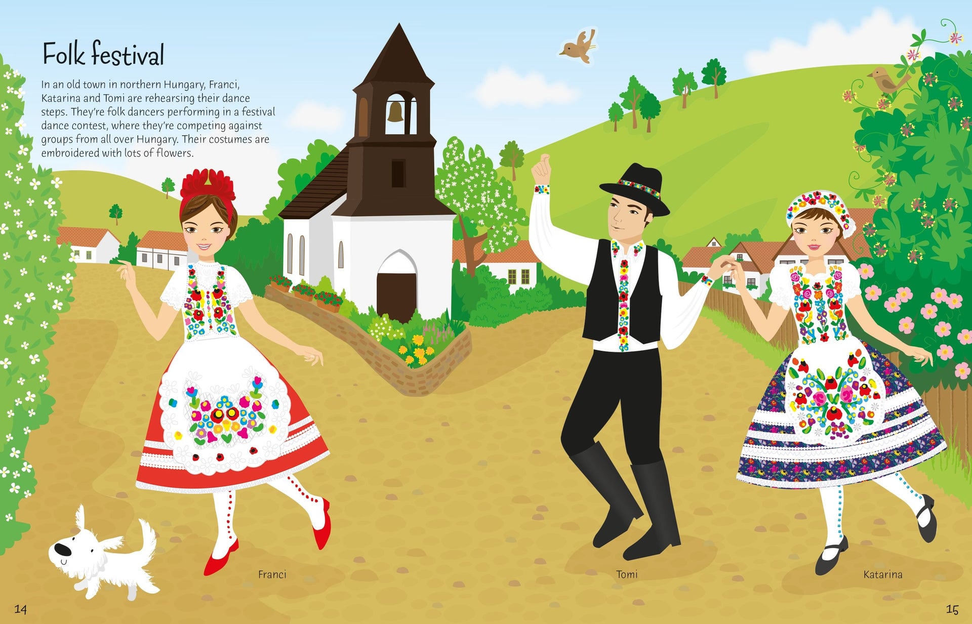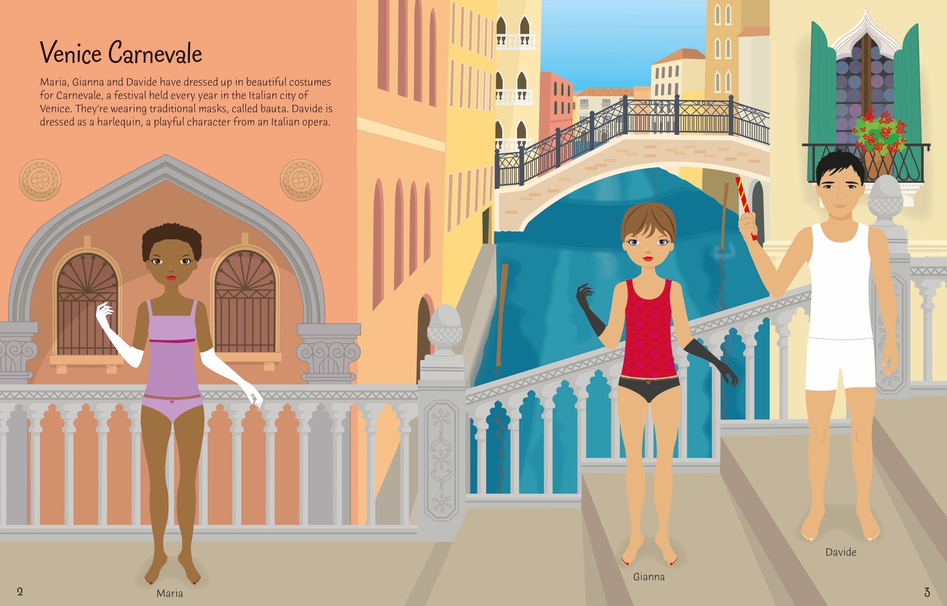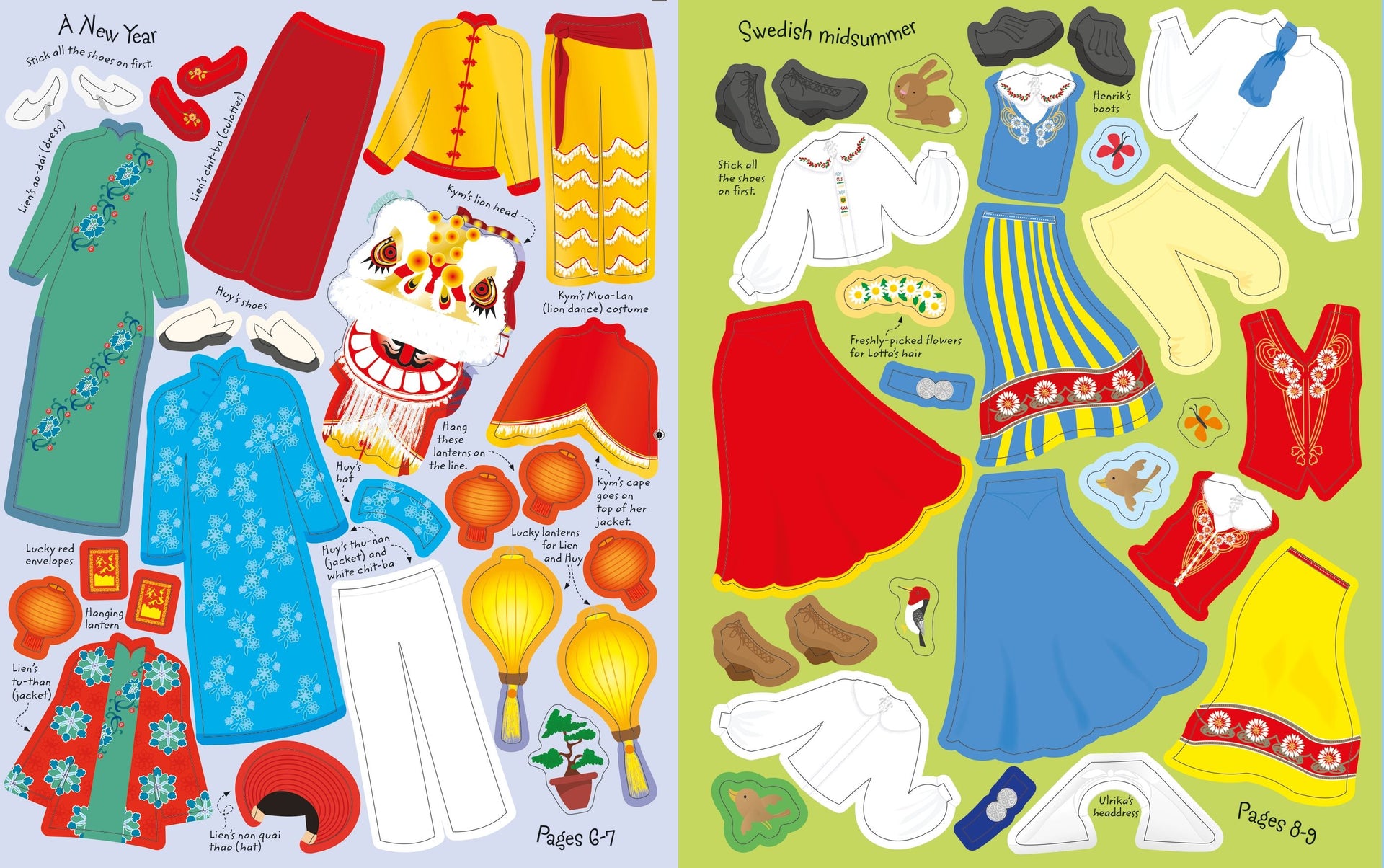 Dress the dolls in traditional dresses, ornate jewellery, dancing shoes and headdresses for lots of exciting festivals and carnivals around the world. There are elegant sparkly dresses, masks for a carnival in Venice, a lion costume for a New Year festival in Vietnam, outfits for Holi, Swedish midsummer, a Hungarian folk festival and much more.