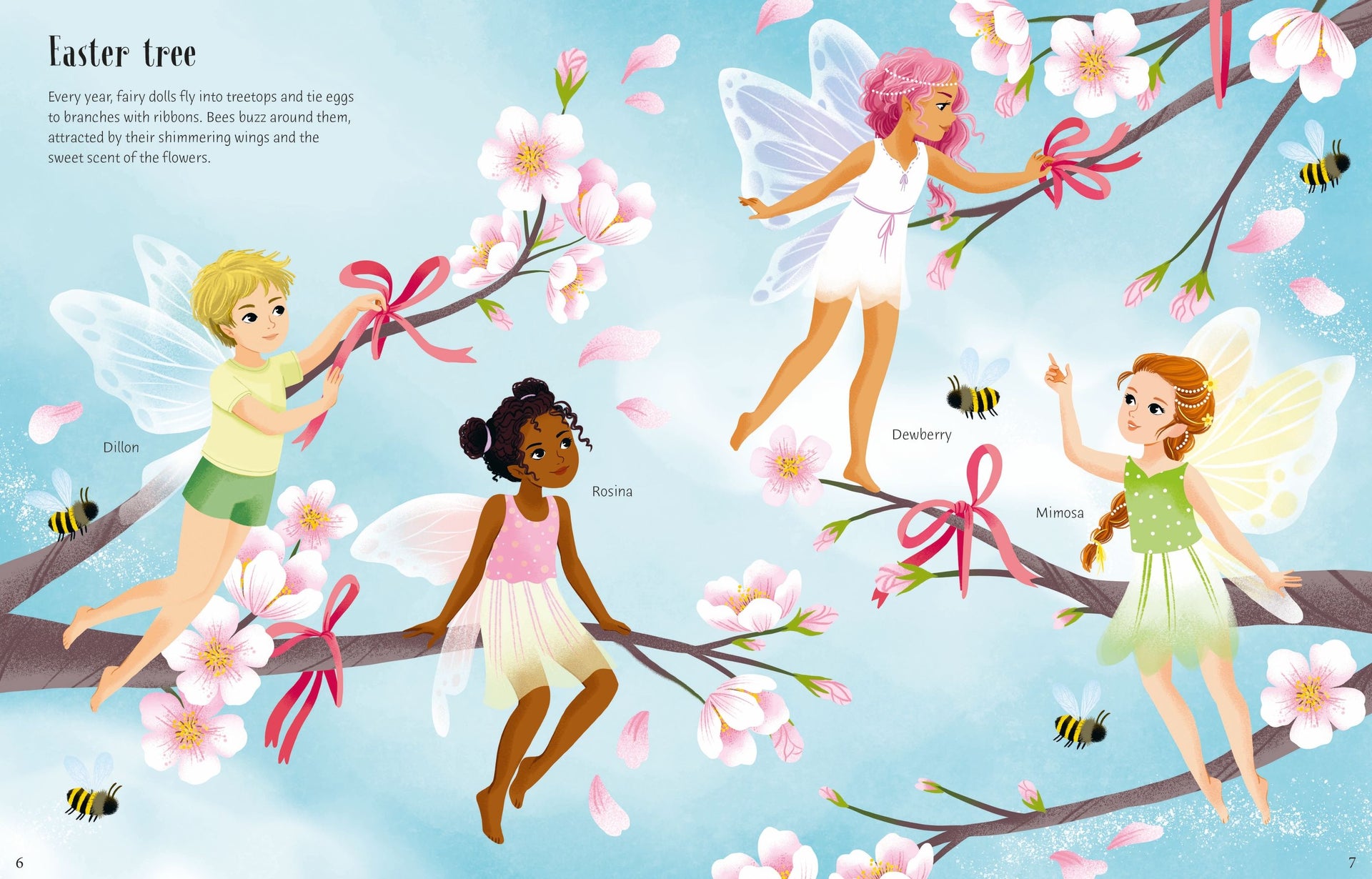 Join the fairies in Fairyland as they hide Easter eggs, go on an Easter egg hunt, follow the Easter bunny's muddy footprints and have lots more fairy fun! Use the stickers to dress the fairies and decorate the enchanting scenes.