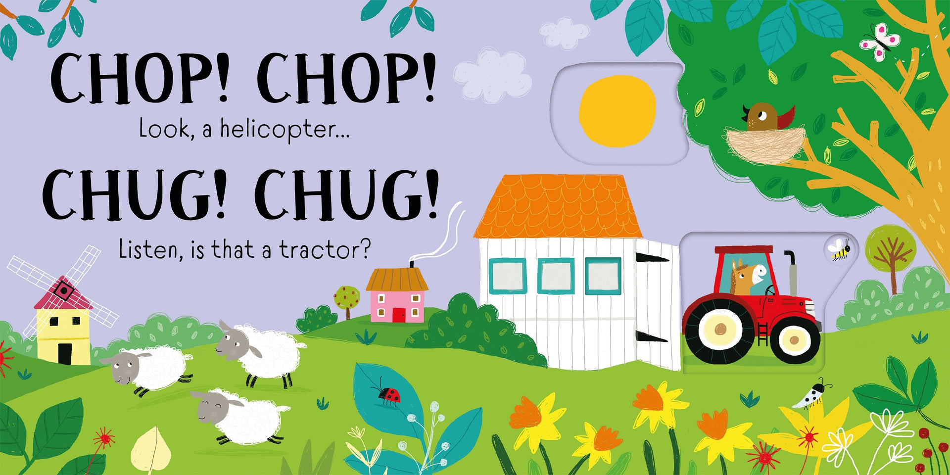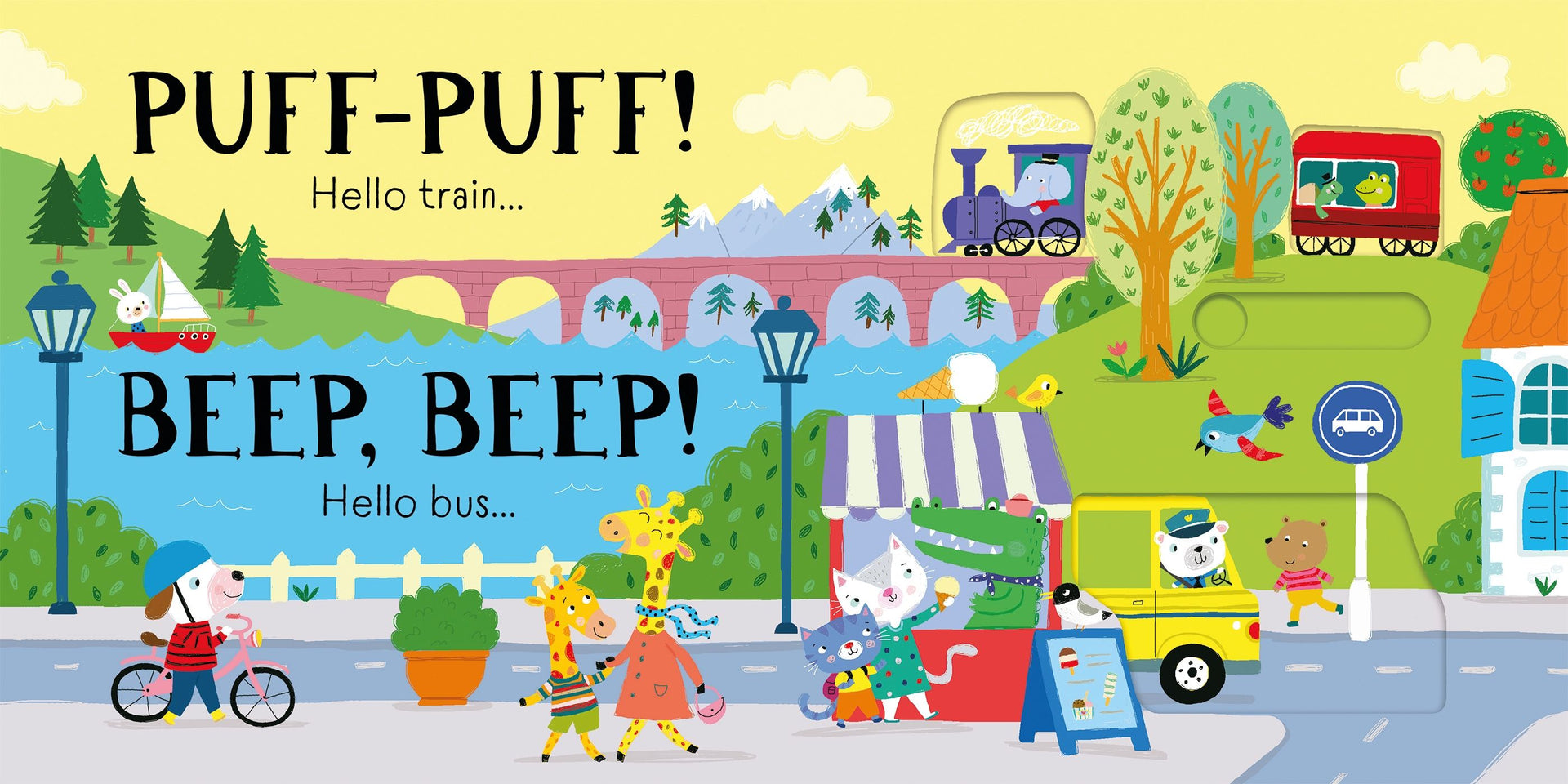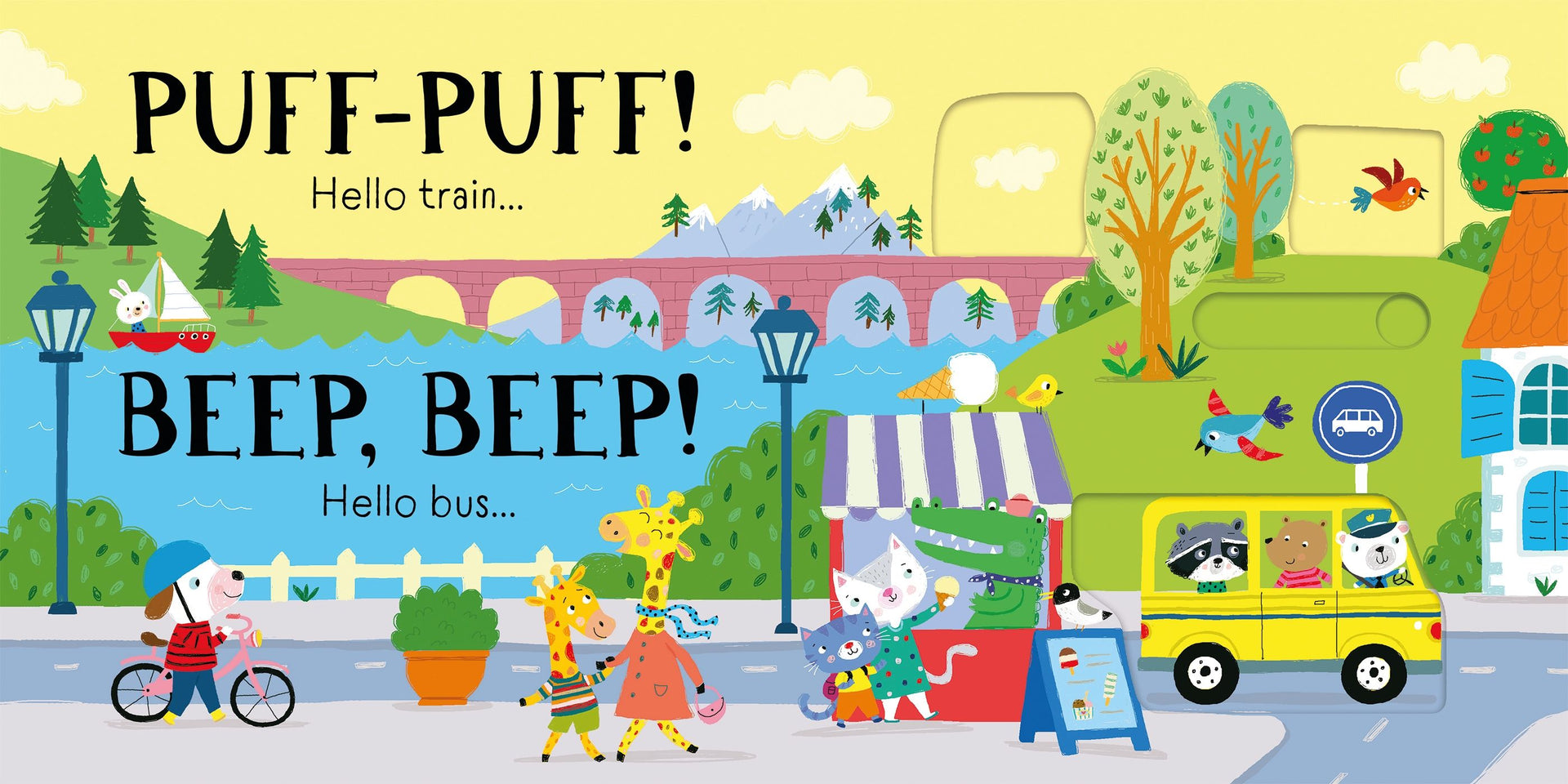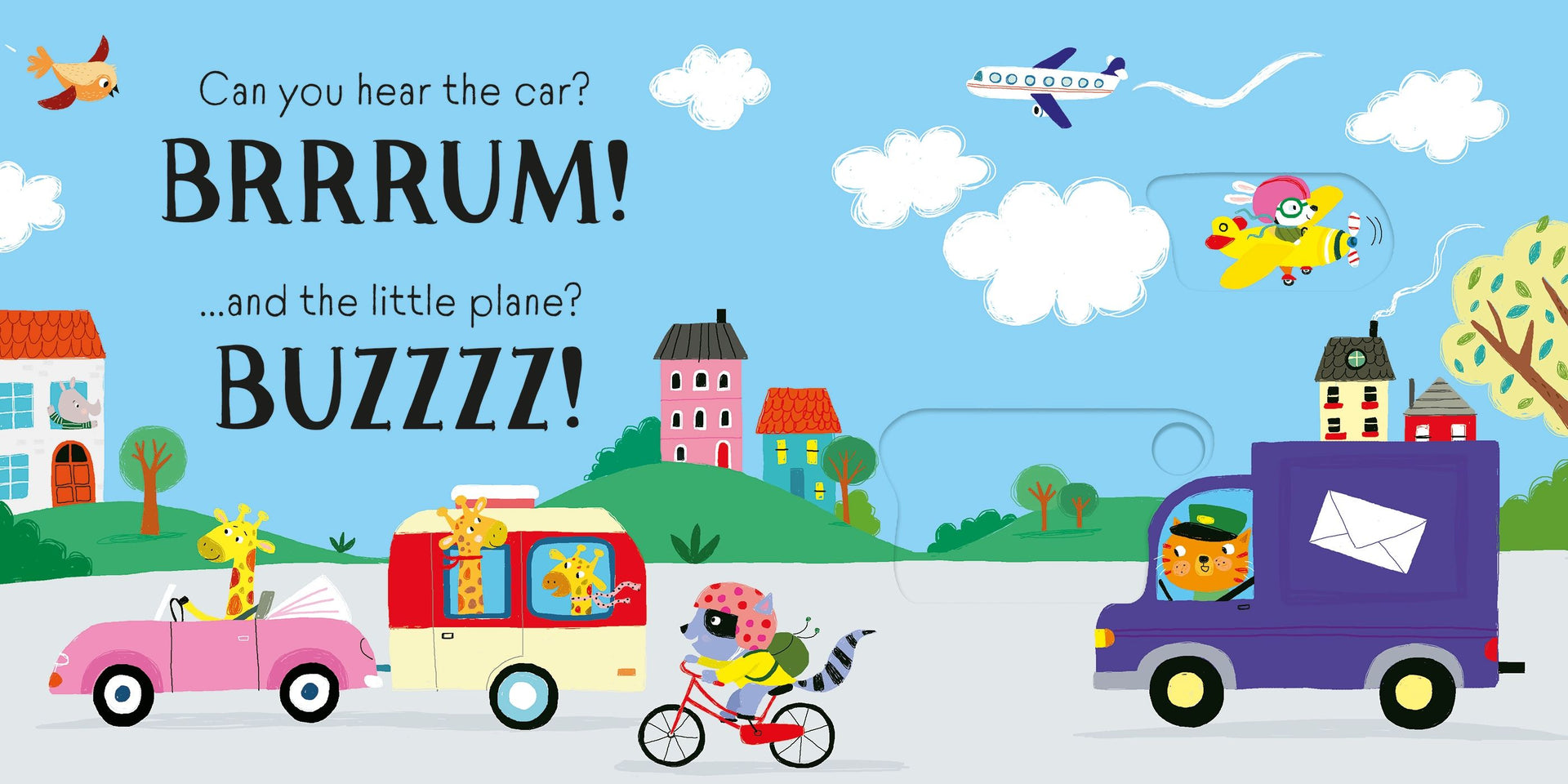 Move the sliders back and forth to hear the different vehicles zooming along in this unique and exciting sound book. When you move a slider one way you'll see and hear one vehicle... and when you move it back the other way you'll see and hear another one. There are planes, trains, cars, motorbikes and buses to discover, all driven by Ailie Busby's charming animal characters.