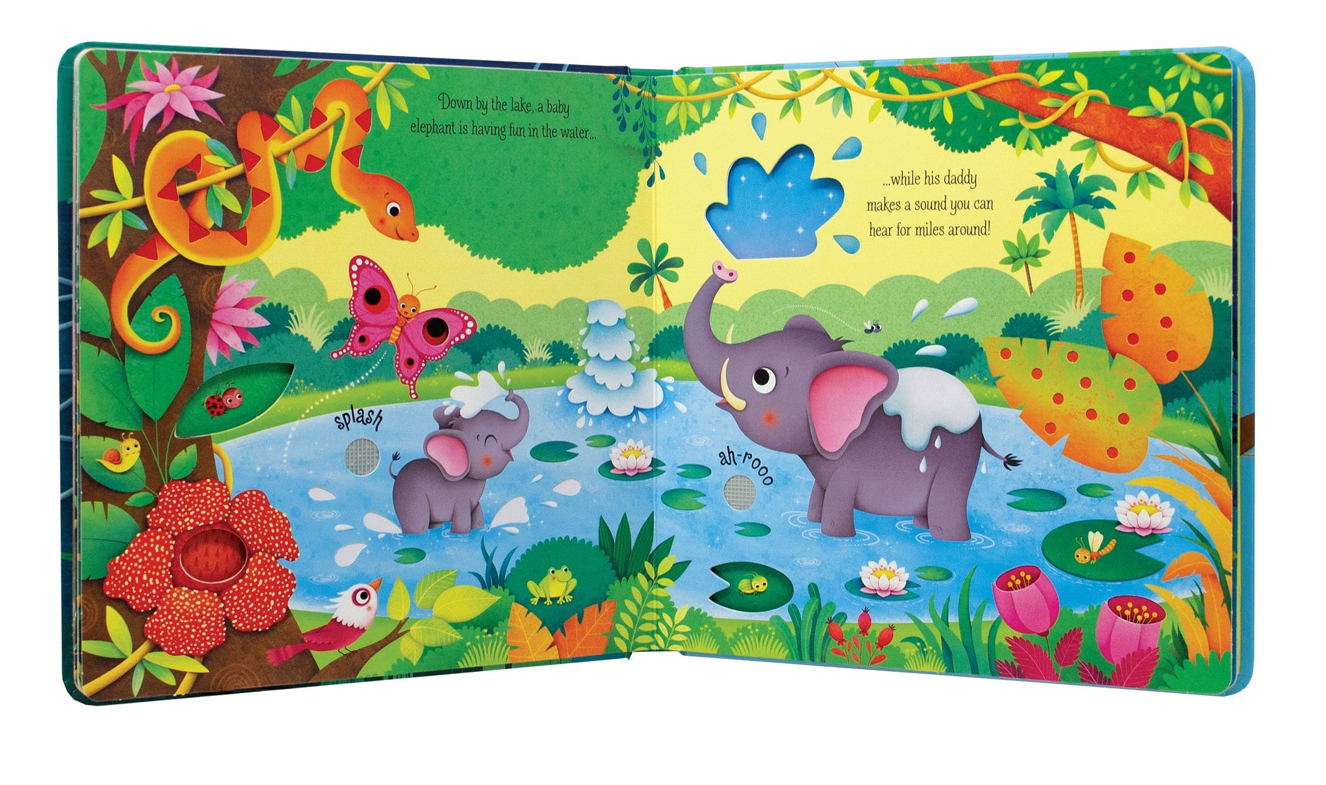 Little children can press the buttons on the pages of this book to hear the wonderful sounds of a jungle, a hungry tiger roaring, tropical birds singing and a noisy orang-utan who isn't yet ready for bed. The colourful pages show the jungle at night, the sun rising and more, with simple text, delightful illustrations and cut-out shapes to discover.