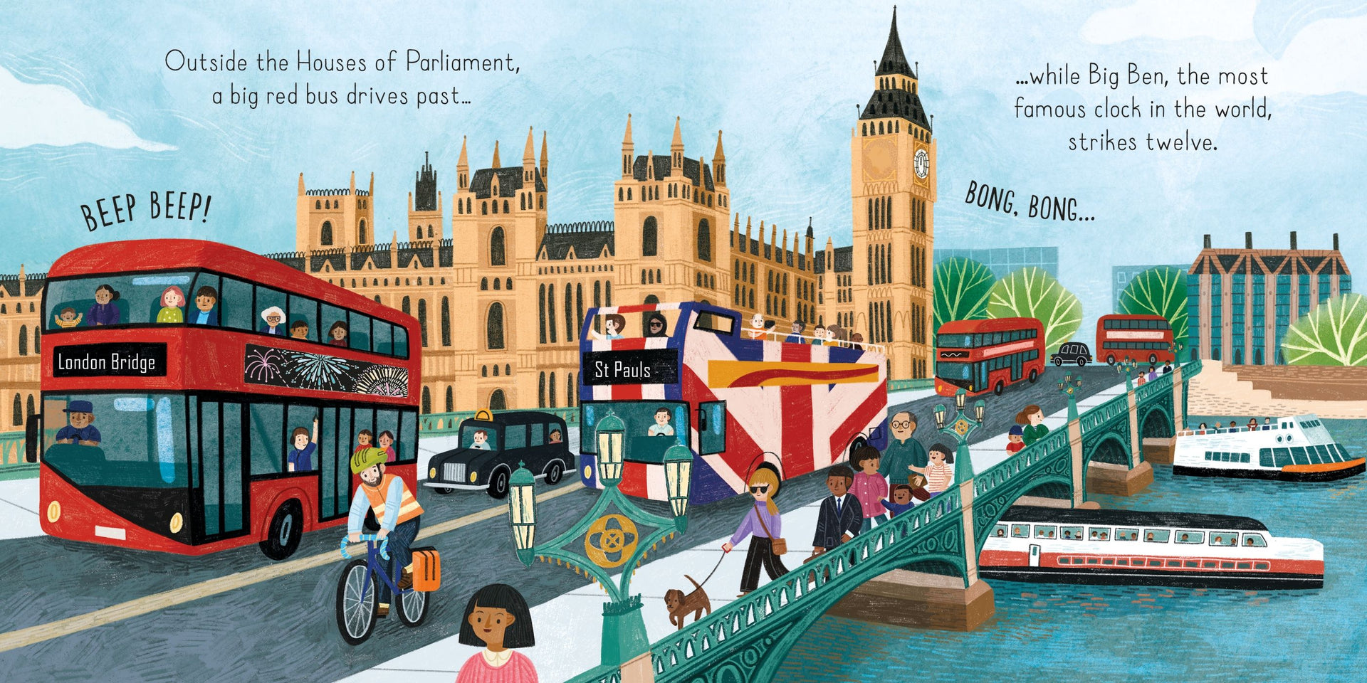 From Big Ben going "bong" to red buses trundling past and pigeons cooing in Trafalgar Square, all the iconic sounds of London come to life when you press the buttons in this exciting book. There are ten sounds to hear as you find out about the most famous places in one of the world's great cities.