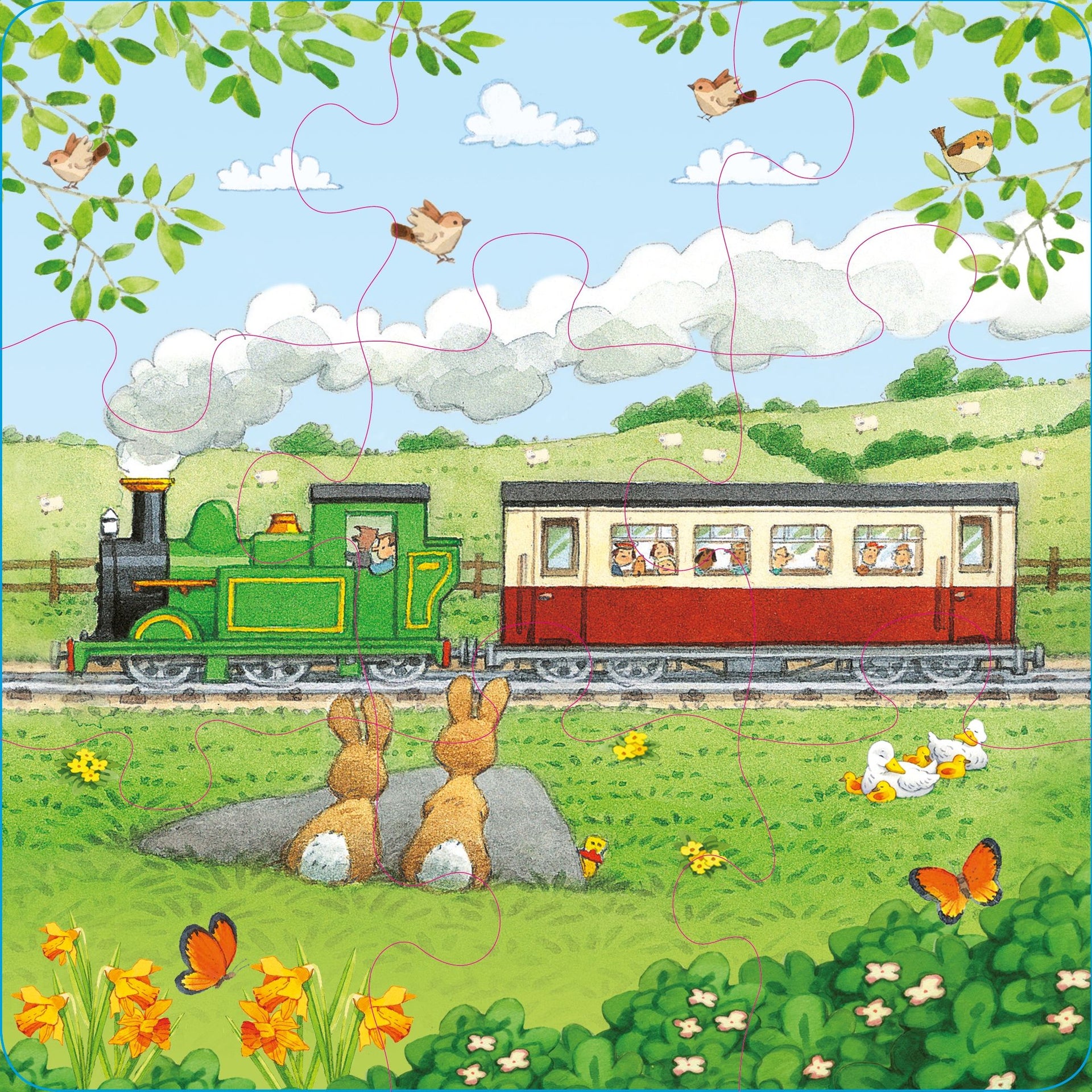 Join Poppy and Sam for a steam-train adventure with this delightful book and jigsaw. Young train lovers can enjoy the story book and have fun completing the simple 9-piece jigsaws, all featuring Stephen Cartwright's beautiful illustrations, with the famous little yellow duck to spot in each one. Jigsaws measure 17 x 17cm once complete.