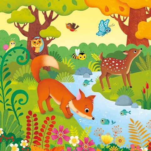 Spot all kinds of woodland animals in this enchanting book and jigsaw set. The box contains three simple 9-piece jigsaws (each measuring 17 x 17cm once complete) and a beautifully illustrated board book. Little children can recreate three of the colourful illustrations by completing the jigsaws, and have fun spotting details from the forest scenes in the book.