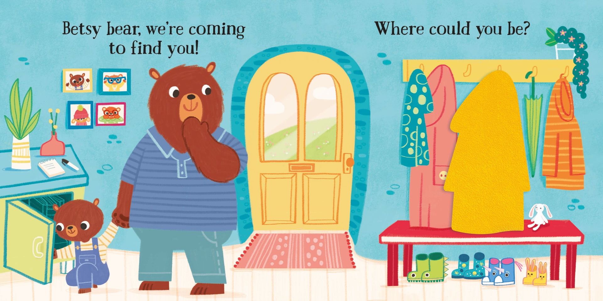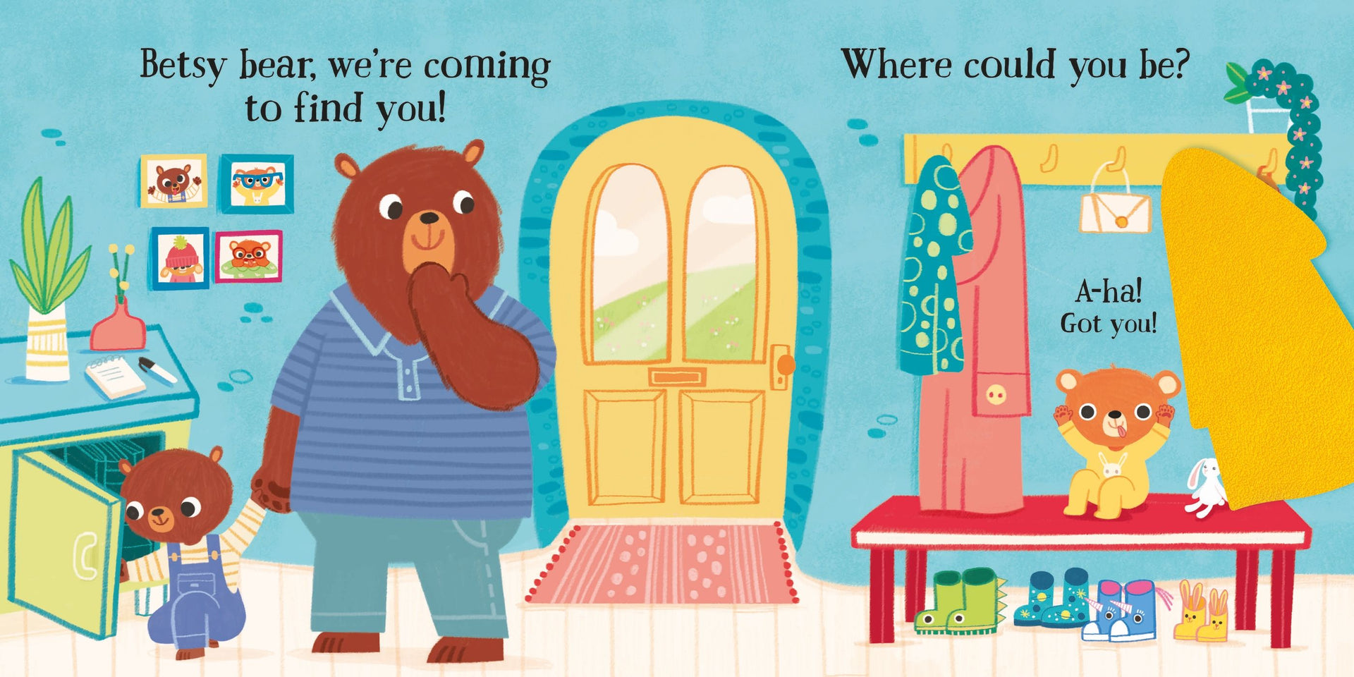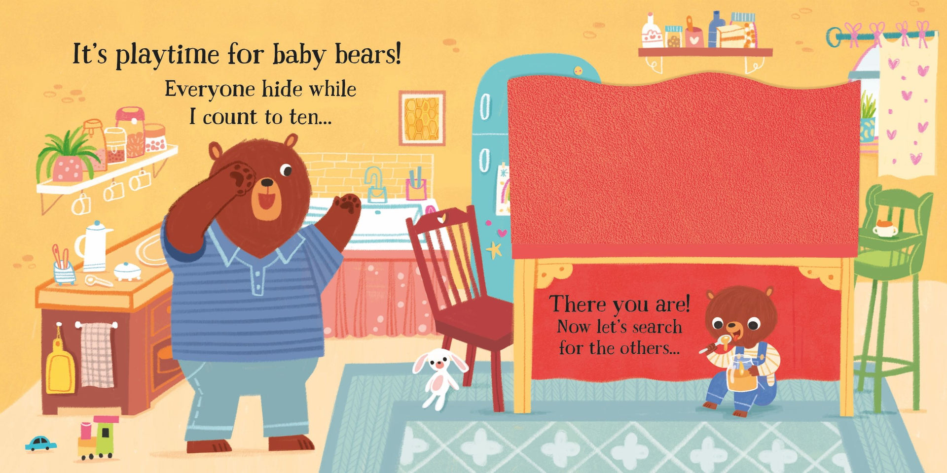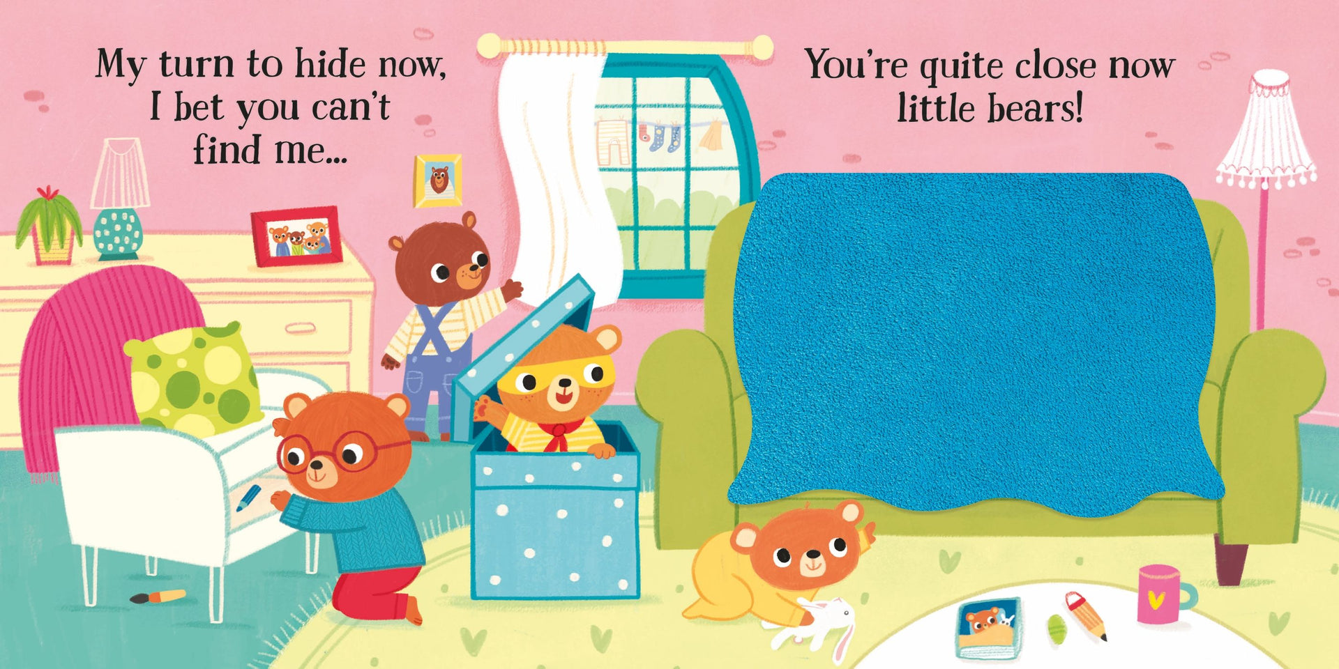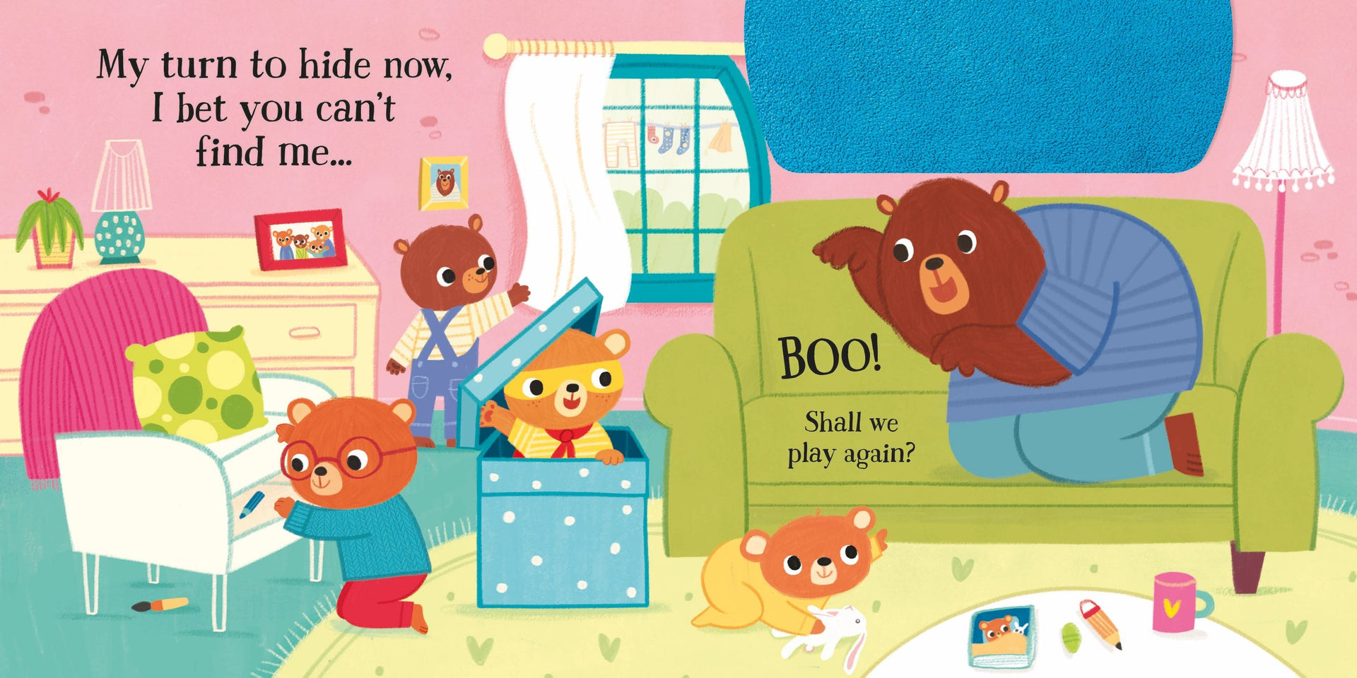 Table cloths, coats, laundry on the line... there are all kinds of soft things that bear cubs just love to hide behind! Each time you lift one of the soft flaps in this book, you'll find a bear cub behind it. On the last page there's an extra surprise when all the little bears discover daddy bear hiding. With adorable artwork and lots of cute details to discover together, this is a perfect book for babies and toddlers to curl up with.