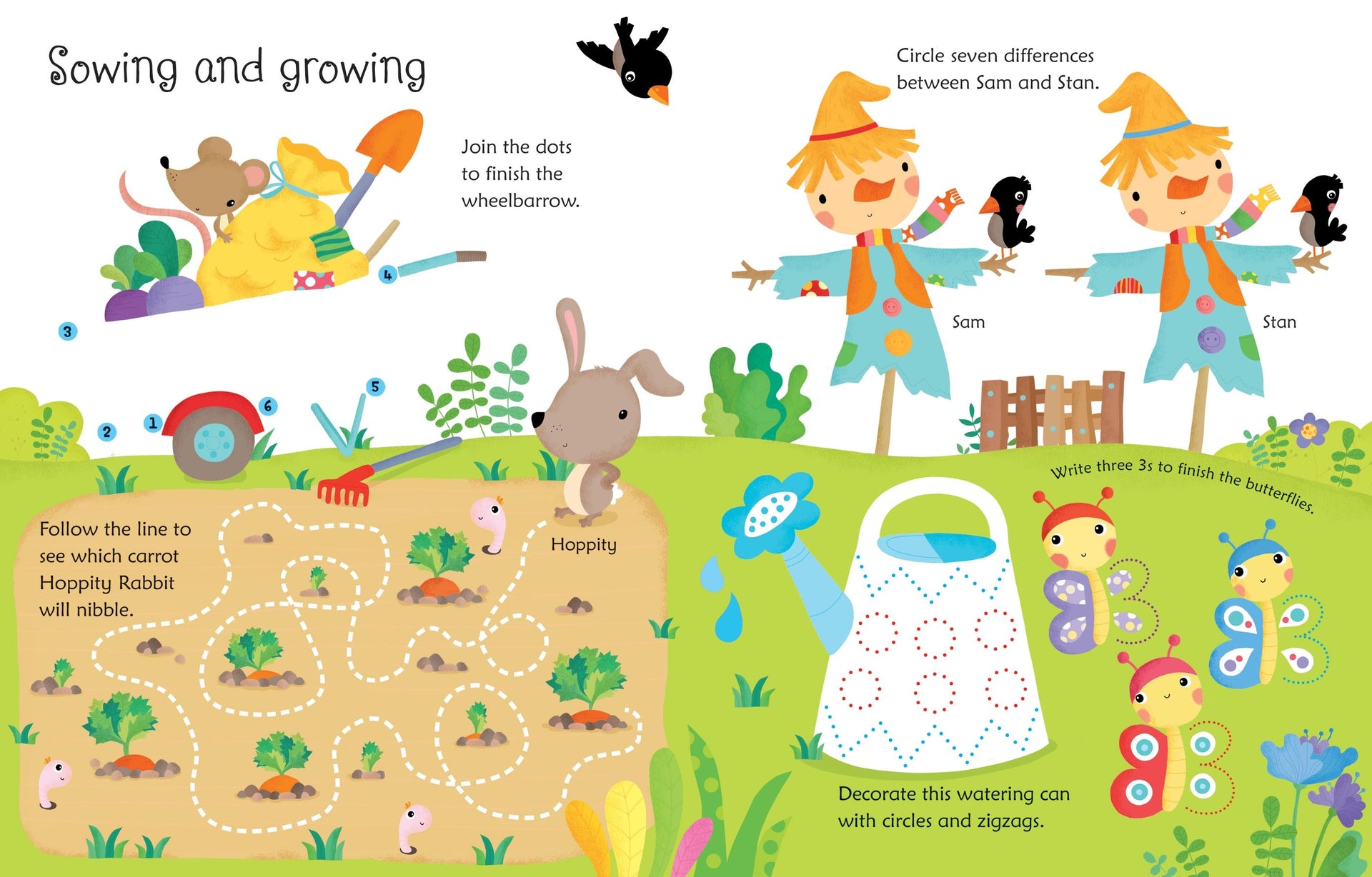 A delightful wipe-clean activity book to help young children develop their basic counting, observation and pen control skills. Each page features a different farm scene, where children can count chicks, help Lottie the lamb find her way through a maze, spot bees in the orchard and lots more. The wipe-clean pages provide lots of opportunities to practise as children can return to activities again and again. A fun and engaging way for young children to learn and develop essential skills.