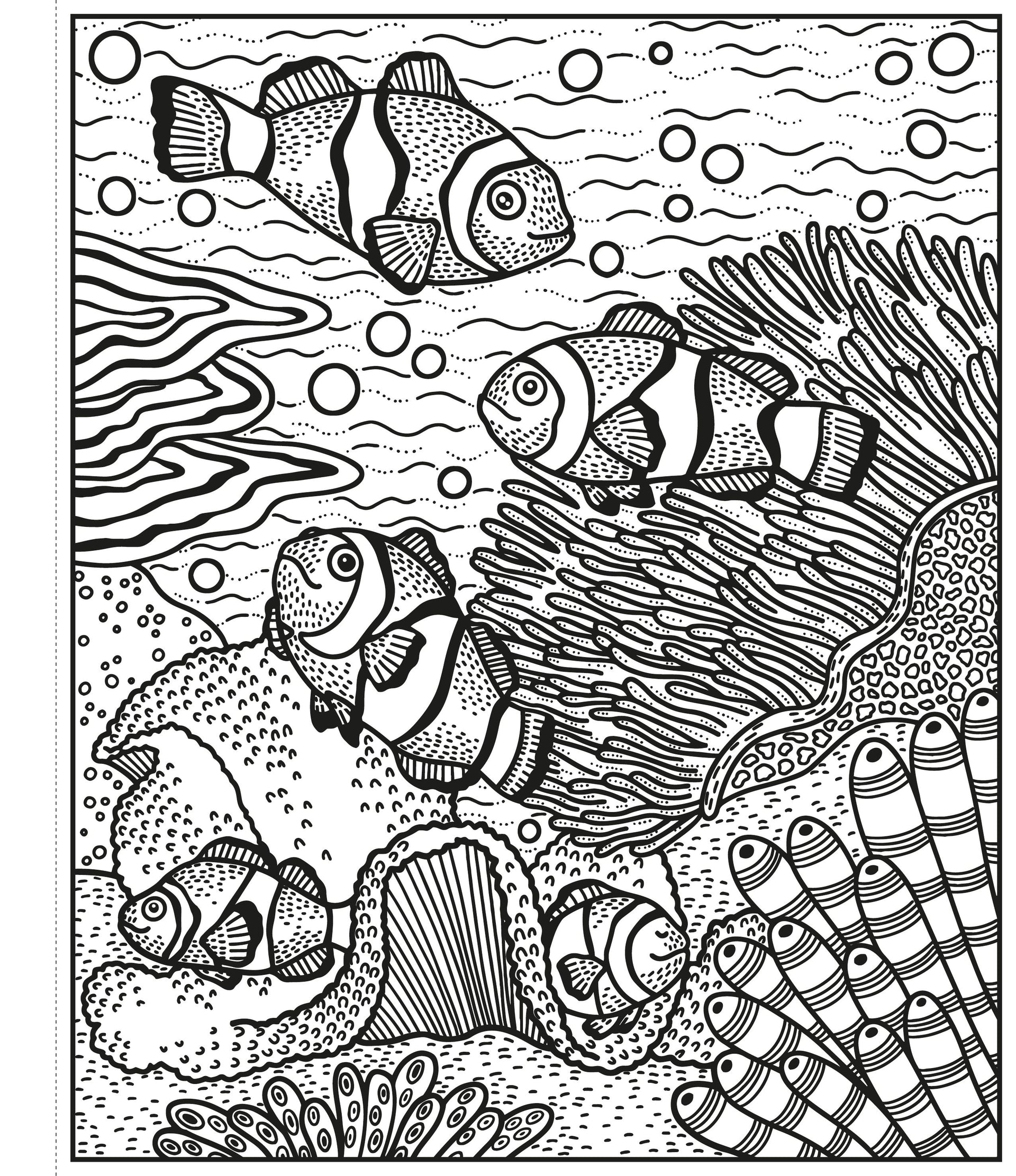 Această carte este plină de scene fascinante ce ilustrează pești, țestoase și alte creaturi marine înotând printre corali.