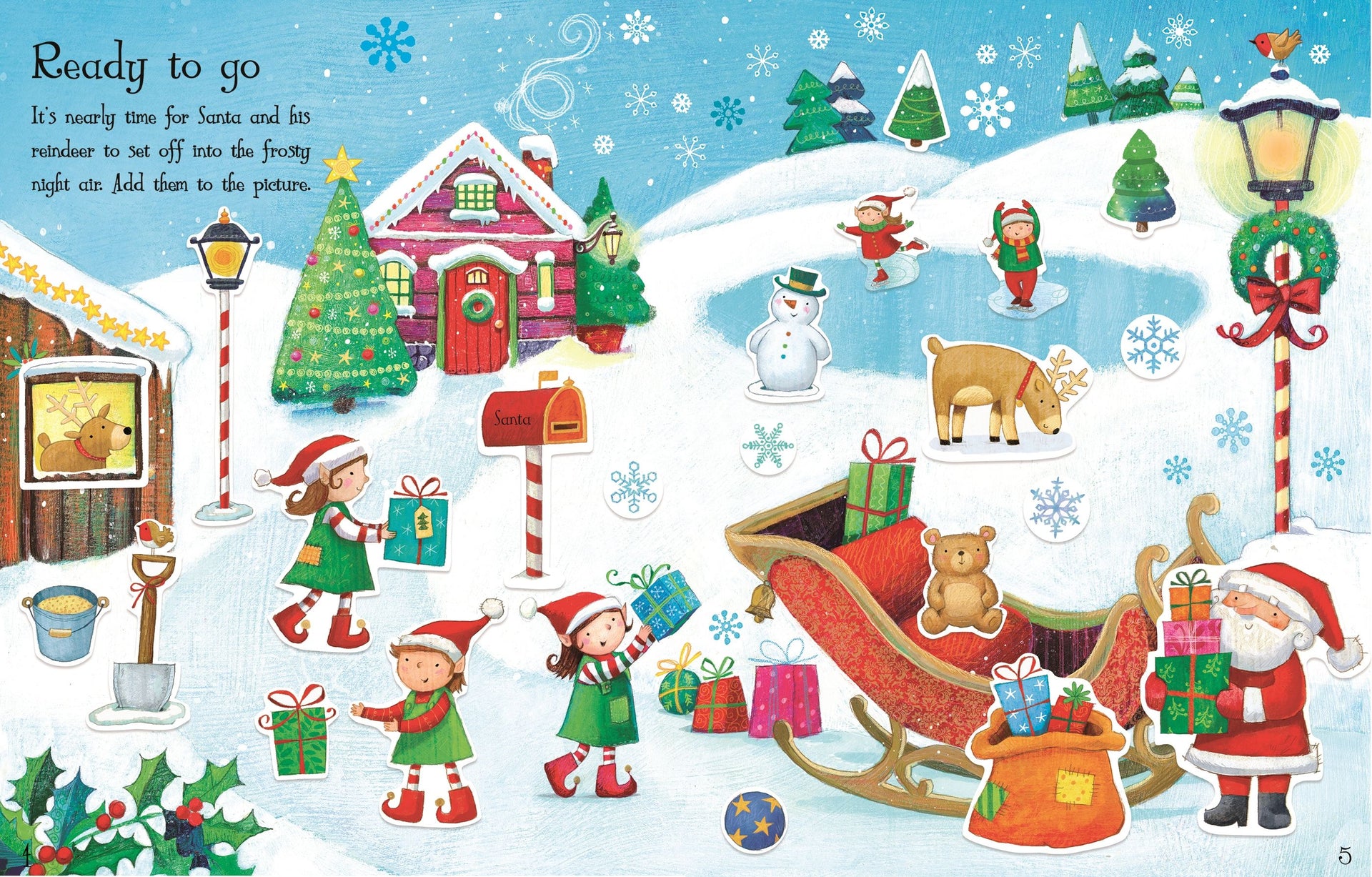A perfect activity book for Christmas; little children will love adding stickers to the magical festive scenes and bringing them to life.Scenes include Santa getting ready, flying in his sleigh and delivering presents.With over 200 stickers.