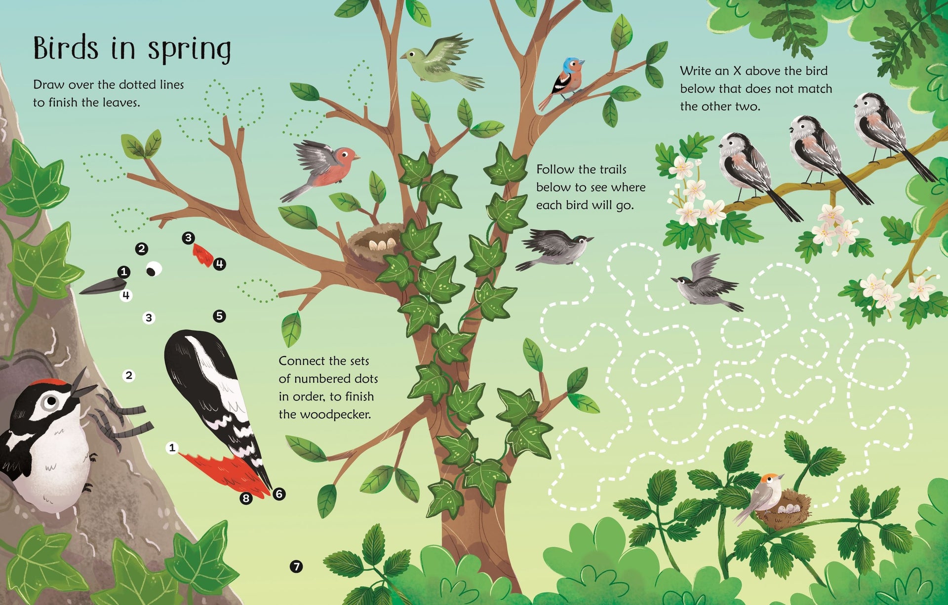 🐿️ "Wipe-Clean Woodland Activities" este plină de provocări interactive, de la unirea punctelor, rezolvarea labirinturilor și găsirea diferențelor, până la învățarea unei scrieri de cifre. Aceste activități contribuie la dezvoltarea abilităților motorii fine, a concentrării și a rezolvării de probleme.